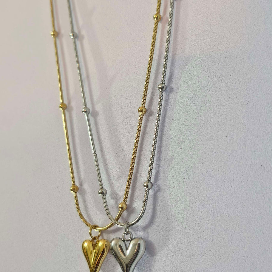 3D heart pendant necklace. The entire chain measures 19.5 inches [including 2 inch extender]. 2 tones available